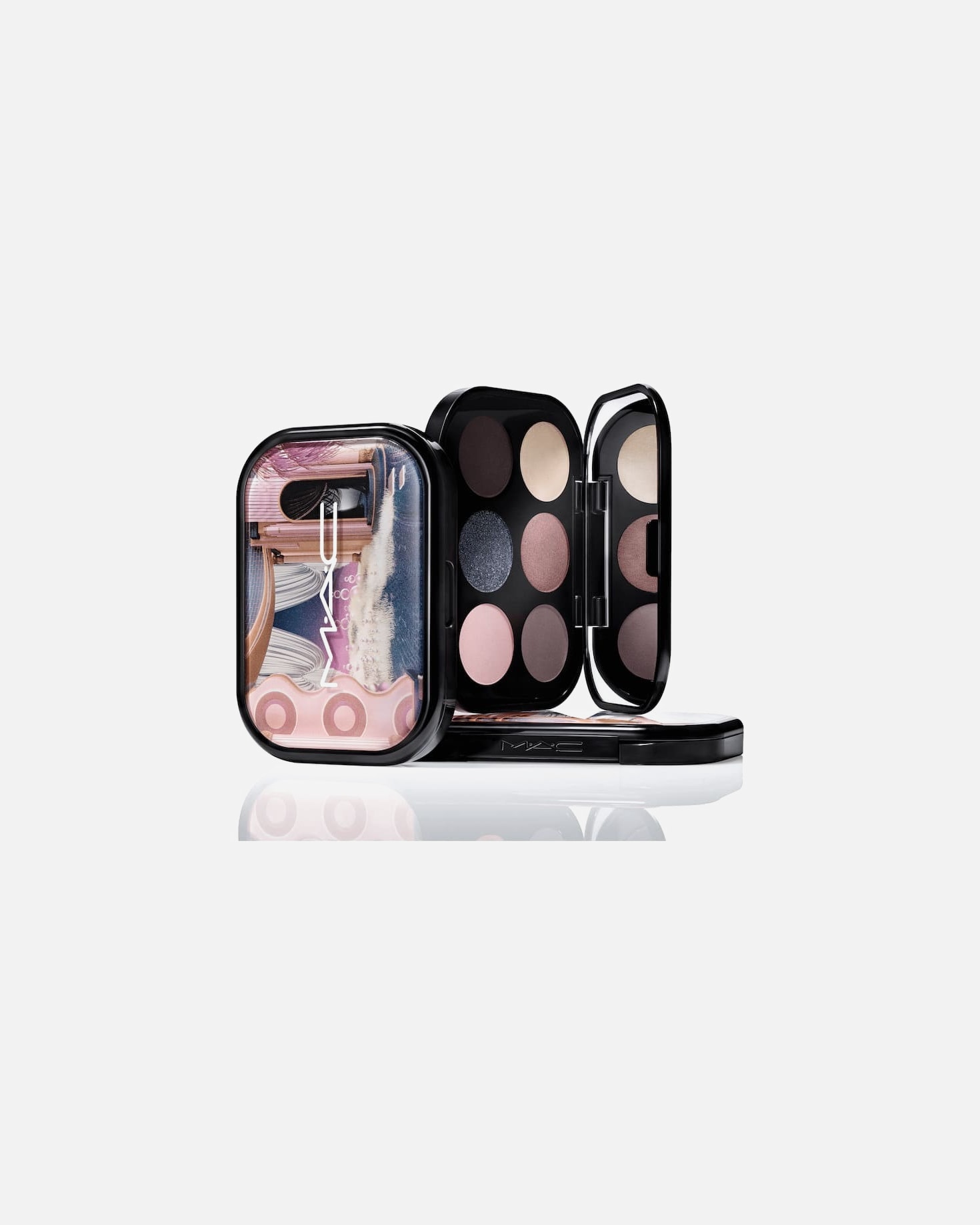 Y2K ontmoet Y3K met deze futuristische look die glanzende, spiegelachtige lippen combineert met ultrareflecterende oogmake-up.